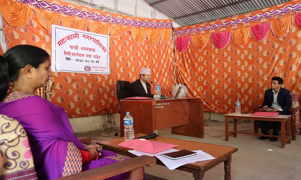 » महाकाली नगरपालिकाको पाचौं नगरसभा मा बोल्दै नगर प्रमुख हंस राज भट्ट ज्यु।
